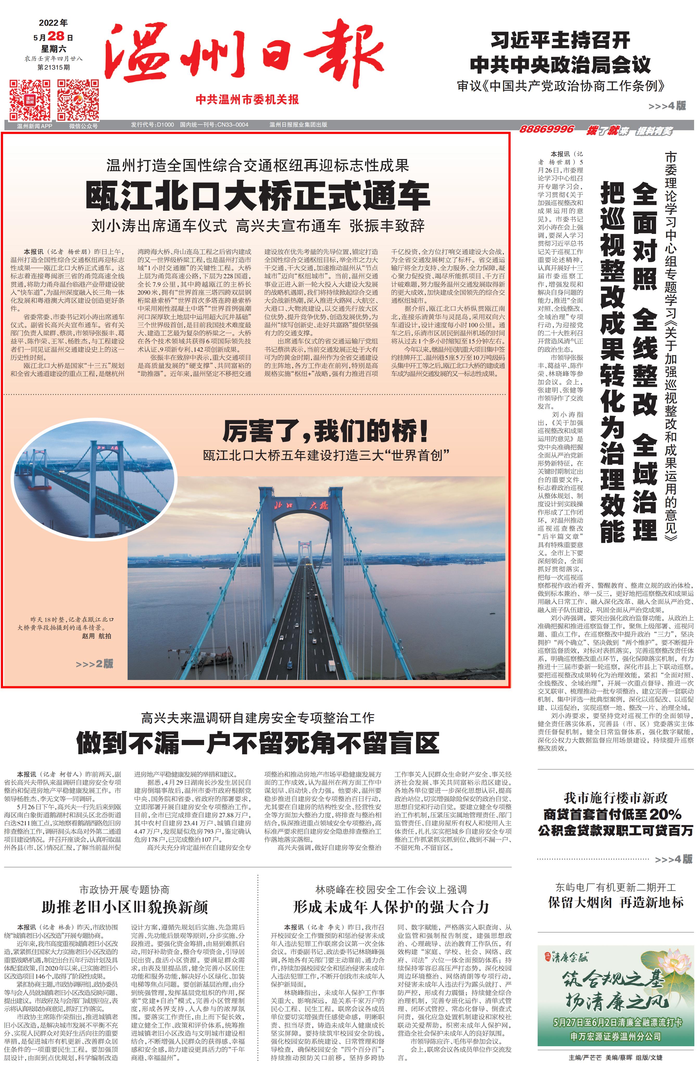 瓯江北口大桥正式通车