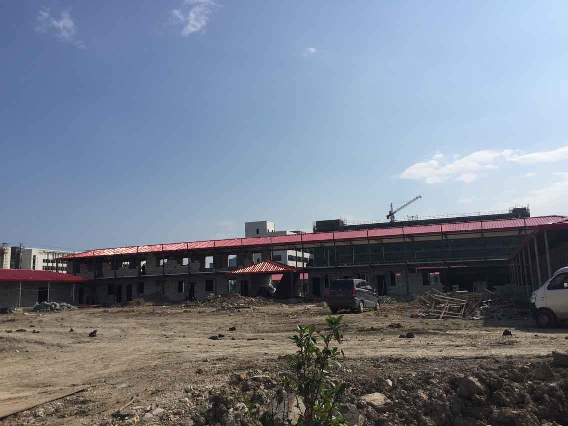 该标段临建总占地面积85亩,规划建设项目部、拌和站、实验室、钢筋加工场、预制场等。自开工建设以来,项目部精心组织,保证材料设备及时到位,并克服高温酷暑等不利因素影响,严格按高起点、高标准推进临建设施建设。经近2个月努力施工,项目驻地办公楼已基本落成,并进入装修施工阶段。