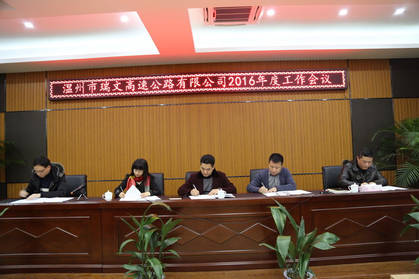 为进一步总结经验,安排部署新一年工作任务,1月30日,瑞文公司在瑞安市高楼镇现场办召开了2016年度工作会议。公司总经理宋海良、副总经理覃毅宝、夏笑丽及全体员工参加了此次会议。