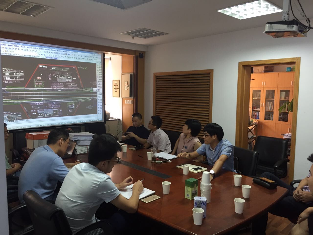 考察组还与省交通规划设计研究院建筑分院邵院长、黄主任等专家,就服务区和加油站的建设规模、规划布局、构造等细节进行了深入沟通,充分表达了设计布局上要充分考虑预留加油加气空间、节约后期运营成本以及尽可能提供商业空间的意见建议,双方还就如何提升陶山服务区设计品味和绿化景观等进行了探讨,省院表示将吸收合理化建议,完善相关设计,加快出图进度。