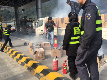 仰义征收一组收费员施兢业第一时间发现险情,立即组织现场管理人员、安保人员取出车道里的灭火器实施应急救援,及时将火扑灭。由于反应迅速,处置得当,仰义收费车道现场车辆秩序井然,着火车辆也未造成重大损失,货车司机激动地向现场人员连连道谢。