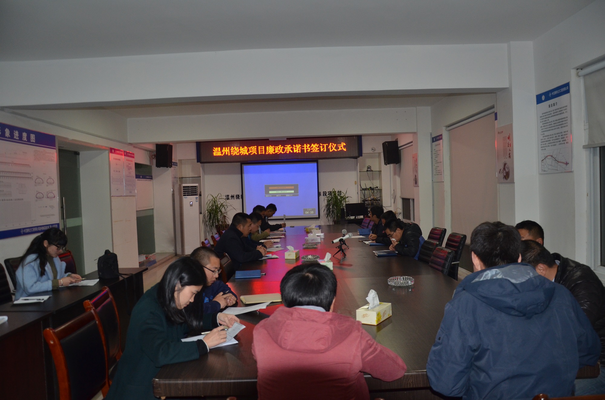 为进一步强化项目职工干部的廉洁自律意识,筑牢拒腐防变的“防火墙”,3月6日,绕北二期工程土建4标项目部领导班子及部门负责人在会议室举行廉政承诺书签订仪式。