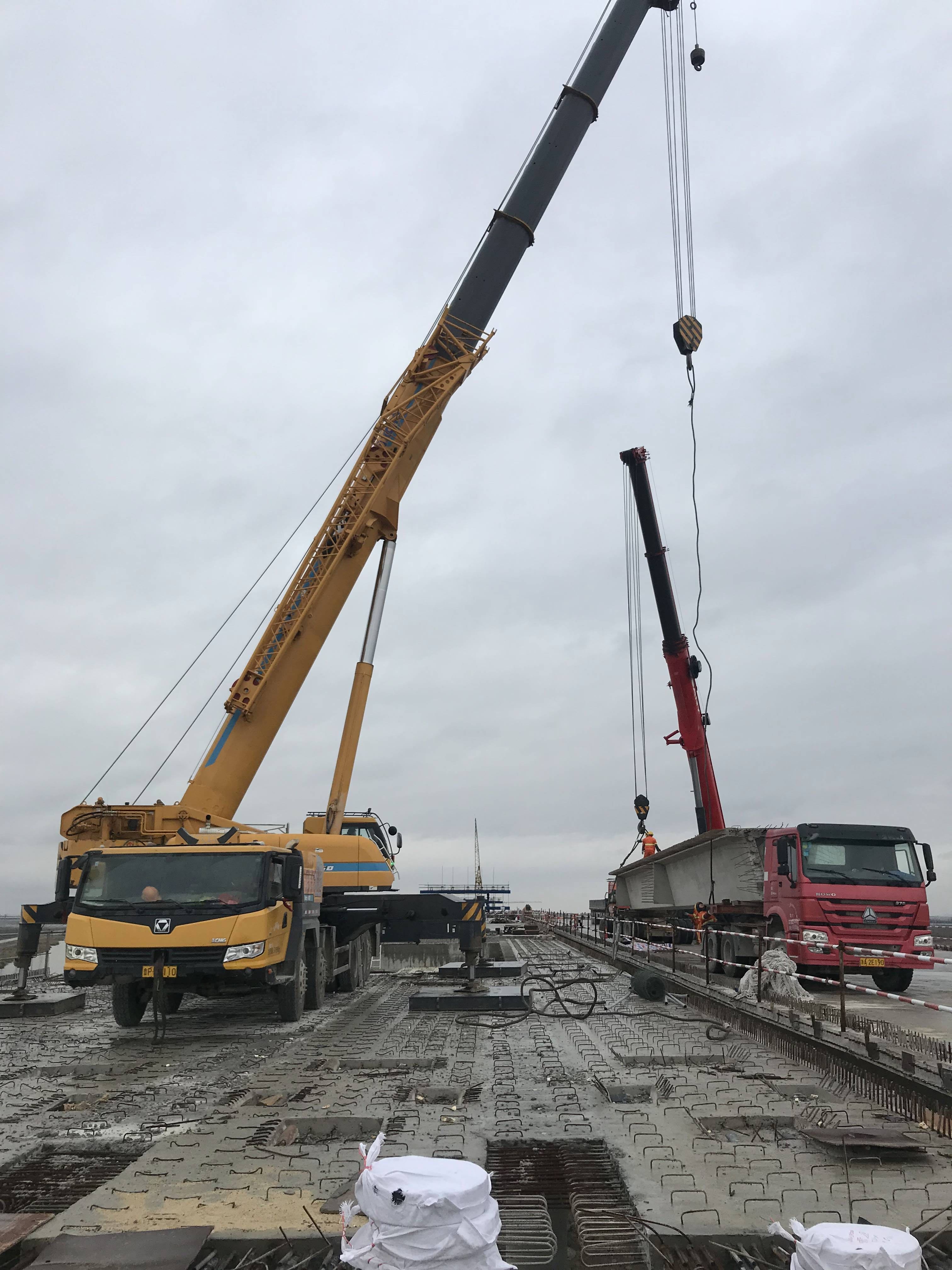 该标段预制和架设箱梁共730片,其中30米箱梁690片,25米箱梁40片。自2016年11月22日预制箱梁架设施工以来,项目部积极完善施工专项方案,加强技术人员技术、安全质量培训,对作业班组进行系统的作业技术交底和安全技术交底。在架设过程中,强化现场施工过程控制,认真落实施工方案,科学统筹配置机械设备,优化箱梁架设的施工方法与技术控制,保证了预制箱梁架设任务的顺利完成。