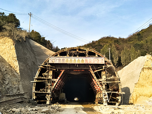 甬台温复线南塘至黄华段1标项目金山隧道为分离式扩建隧道,隧道拓宽采用两侧各新建一座二车道隧道的形式,既有隧道利用维持不变,新建隧道与既有隧道的最小净距为25米。隧道左洞全长465.42米,其中发育三条断层破碎带,围岩状况与支护形式复杂多变。在隧道二衬施工作业中,项目强抓质量管理,重点控制钢筋间距、保护层厚度及混凝土外观质量,由于二衬结构形式变化较快,项目在施工过程中严格控制沉降缝位置,保证了隧道二衬在复杂地质条件下的后期质量。