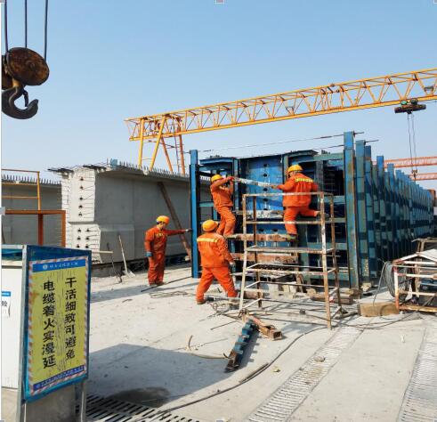 为加快工程建设推进,甬台温复线瑞安至苍南段工程3标鳌江特大桥放弃春节长假,该标段预制梁场的40名工人留守一线继续奋战,加班加点完成任务。
