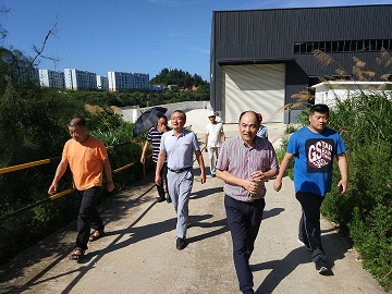 沈振桓一行首先检查珑头湾项目北区次入口道路工程,详细了解该工程边坡施工情况,并就台风天气对边坡施工安全提出了相关要求。随后一行人来到寮顶垃圾场修复工程,该工程人员已经基本转移完毕,现正在对临时设施进行进一步加固,沈振桓就人员转移情况以及临设加固方案做进一步指导工作。
