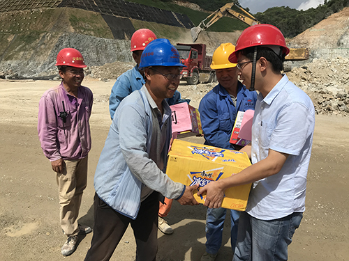“天气热了,一定要做好防暑降温工作,大家辛苦了……”在施工现场,夏理巧为工人们送上防暑降温慰问品,并详细询问工人们生活情况。