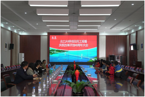 2018年12月18日上午10点,中共中央、国务院召开了庆祝改革开放四十周年纪念大会,温州瓯江北口大桥为学习习近平总书记重要讲话,组织全体建设者观看改革开放庆祝大会现场直播。