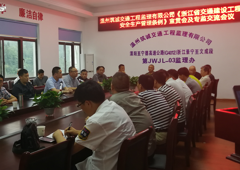 交流会分别对《浙江省交通建设工程质量和安全生产管理条例》以及公司新制定的《项目监理机构管理办法》进行了宣贯,并开展安全事故案例和廉政警示教育视频学习。最后由总监、专监先进代表交流分享各自监理工作过程中总结的监理方法、经验和管理措施。