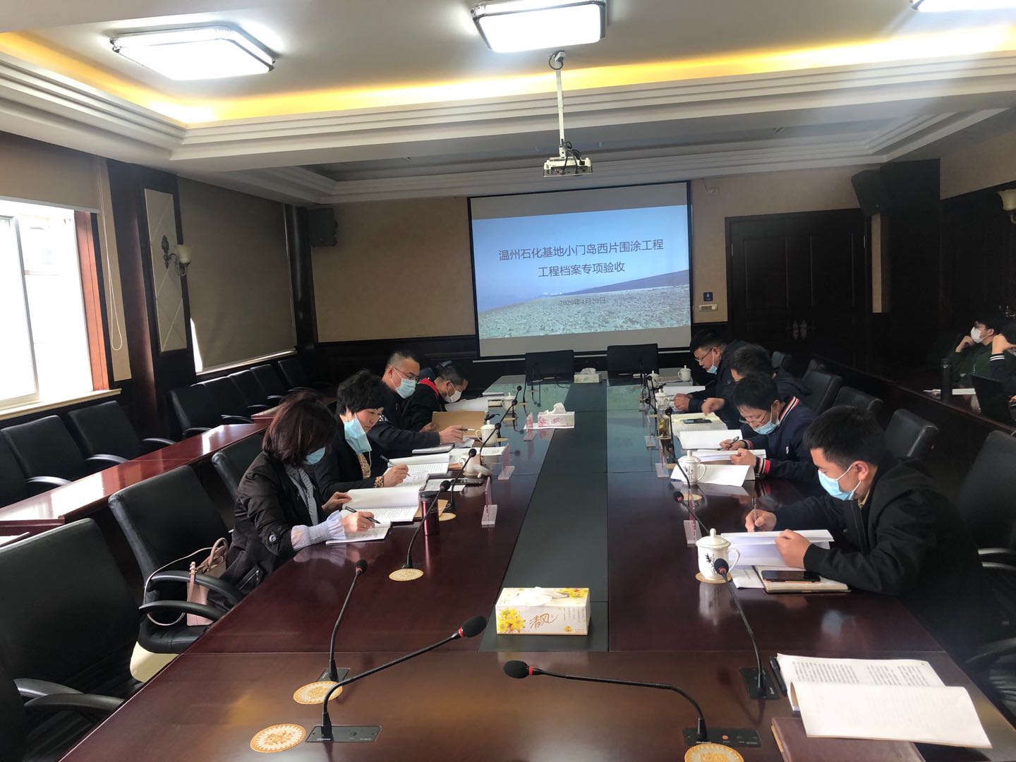4月20日下午,温州石化基地小门岛西片围涂工程工程档案专项验收会议在温州大小门岛投资开发有限公司一楼会议室召开。