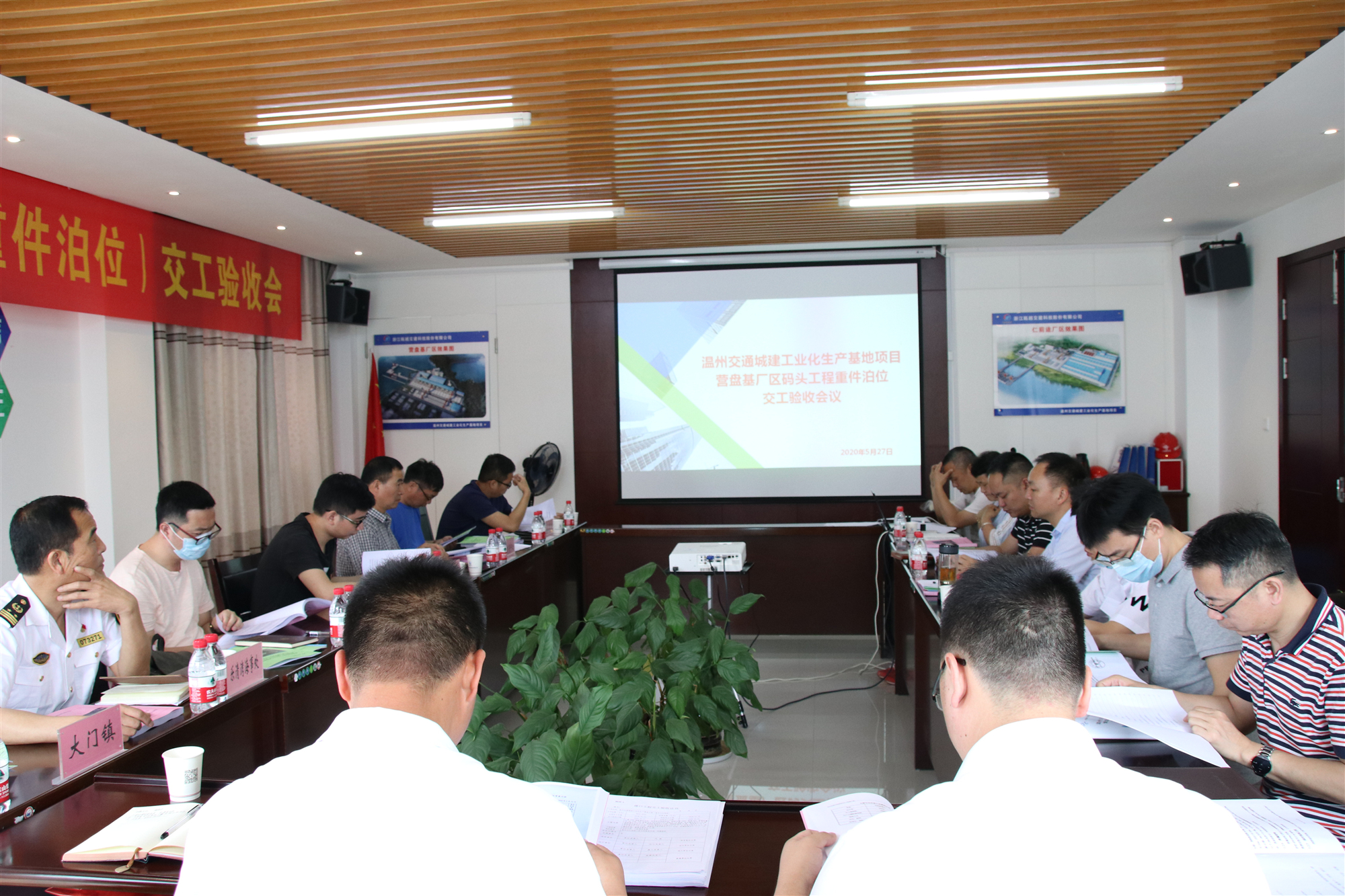 5月27日,由浙瓯交建科技公司牵头组织,市交通局、市交管中心、乐清湾海事处、区交通局、区住建局、大门镇政府及项目施工单位、监理单位、设计单位等政府主管部门和项目参建单位代表共同参与的温州交通城建工业化生产基地营盘基厂区码头工程(重件泊位)交工验收会议顺利召开,标志着项目整体建设进度又跨越了一个重要节点。
