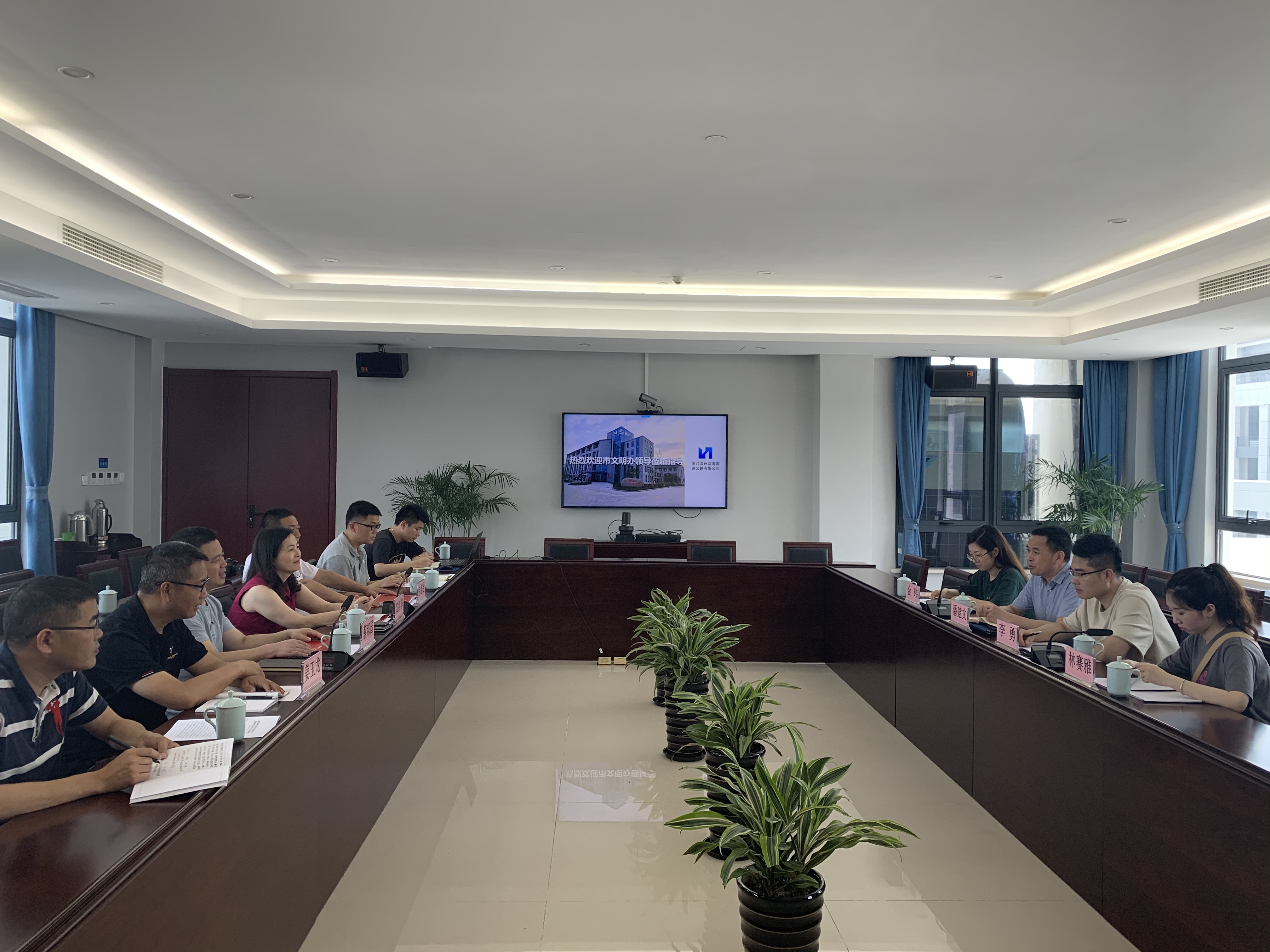 6月11日上午,市文明办潘建文处长一行四人莅临沈海公司检查指导文明单位创建工作。集团文明创建办沈剑华陪同,沈海公司蔡邦国、姜玉龙、包道桧等参加交流座谈会。