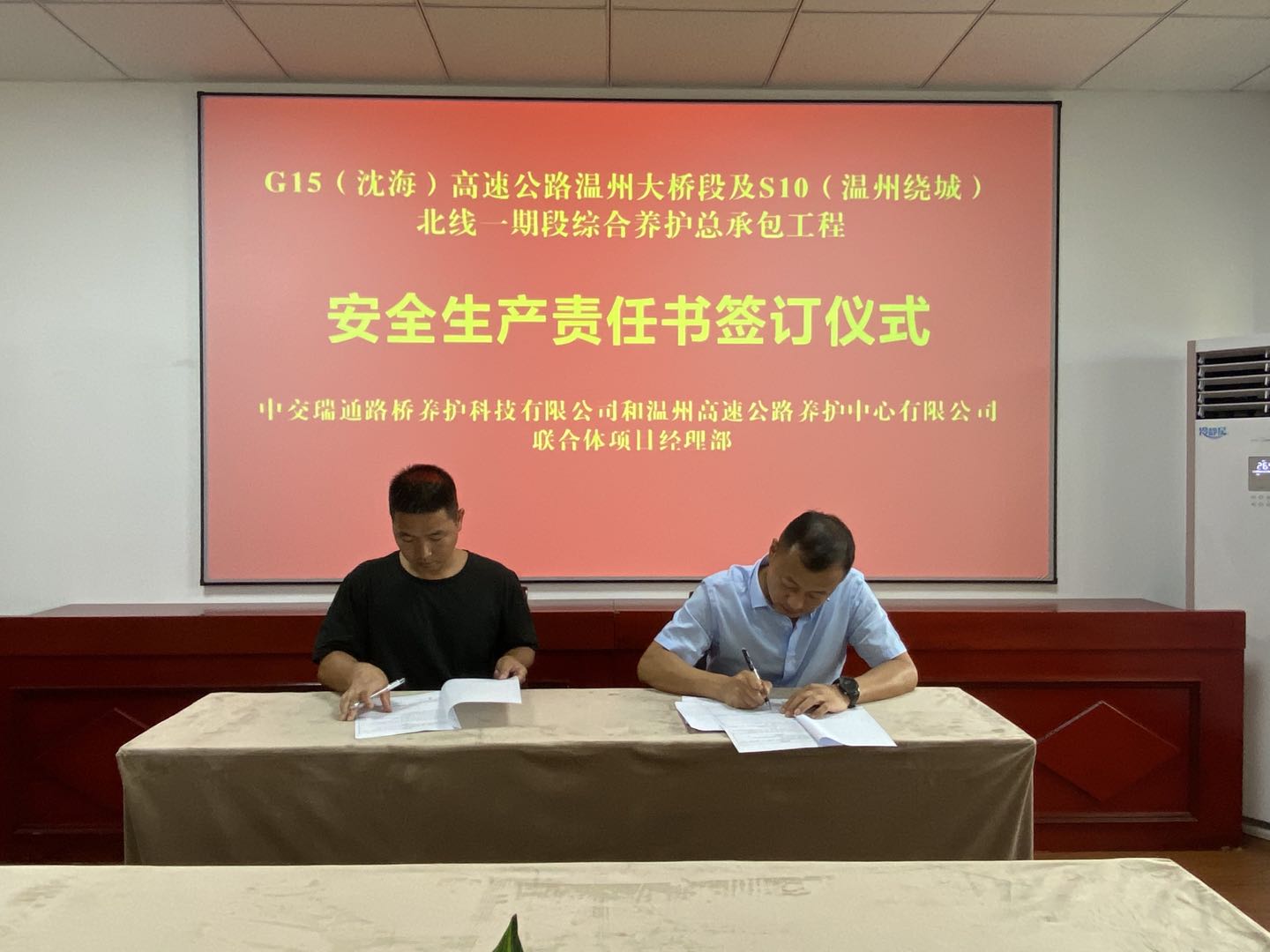 9月3日下午, G15(沈海)高速公路温州大桥段及S10(温州绕城)北线一期段综合养护总承包工程项目部开展安全生产责任书签订仪式,项目部全体工作人员参加。