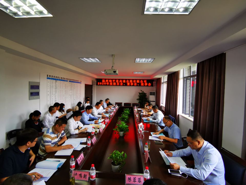 10月12日下午,温州瑞平苍高速公路有限公司2020年股东会、董事会、监事会在公司会议室召开。各股东单位的代表、董事、监事、领导班子及相关列席人员等20余人参加会议。