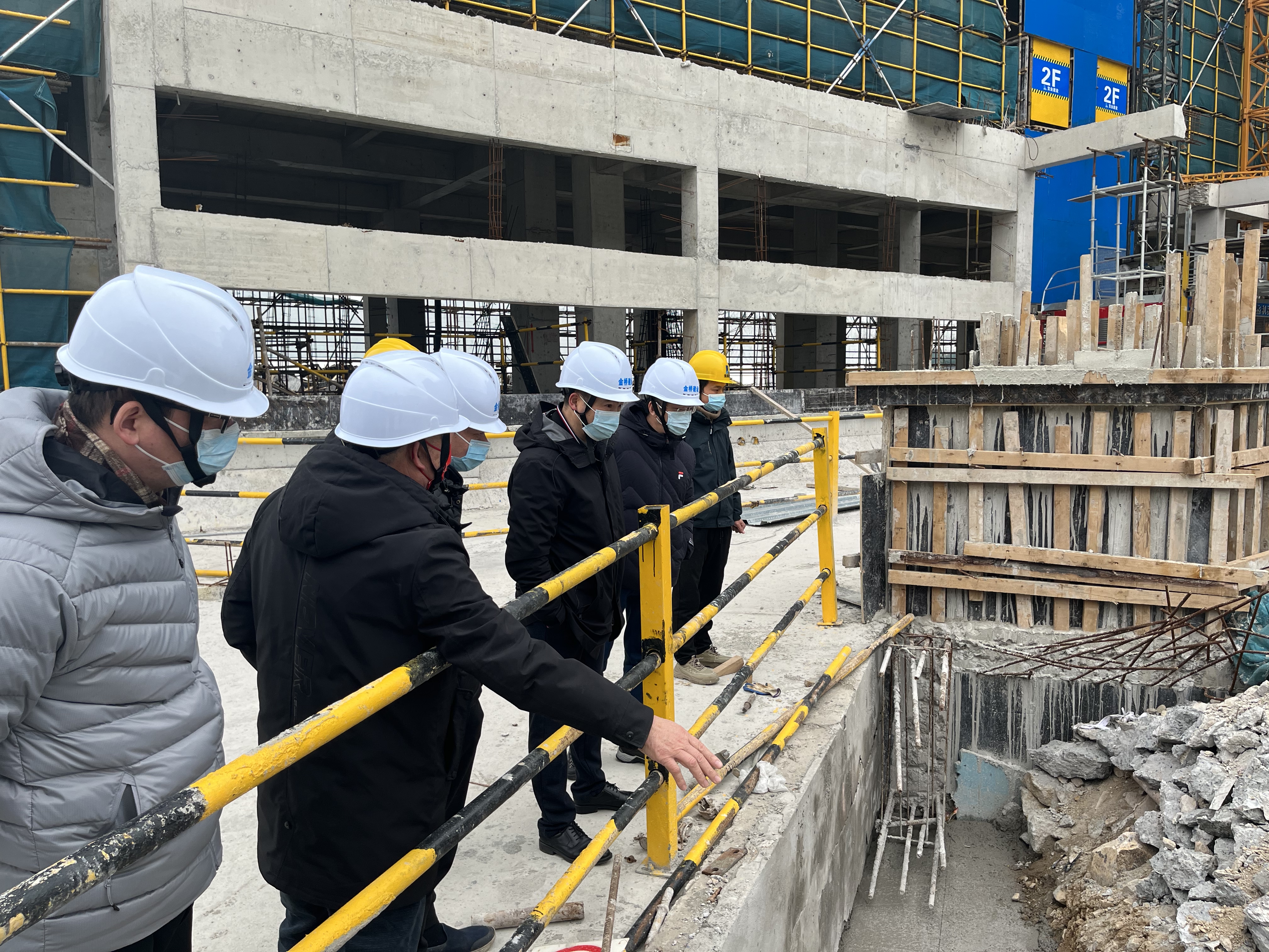 2022年2月22日上午,房开公司董事长沈振桓带队赴珑头湾项目开展安全生产专项检查,房开公司总工程师周建武,房开公司工程部、安全办及金桥公司相关负责人陪同检查。