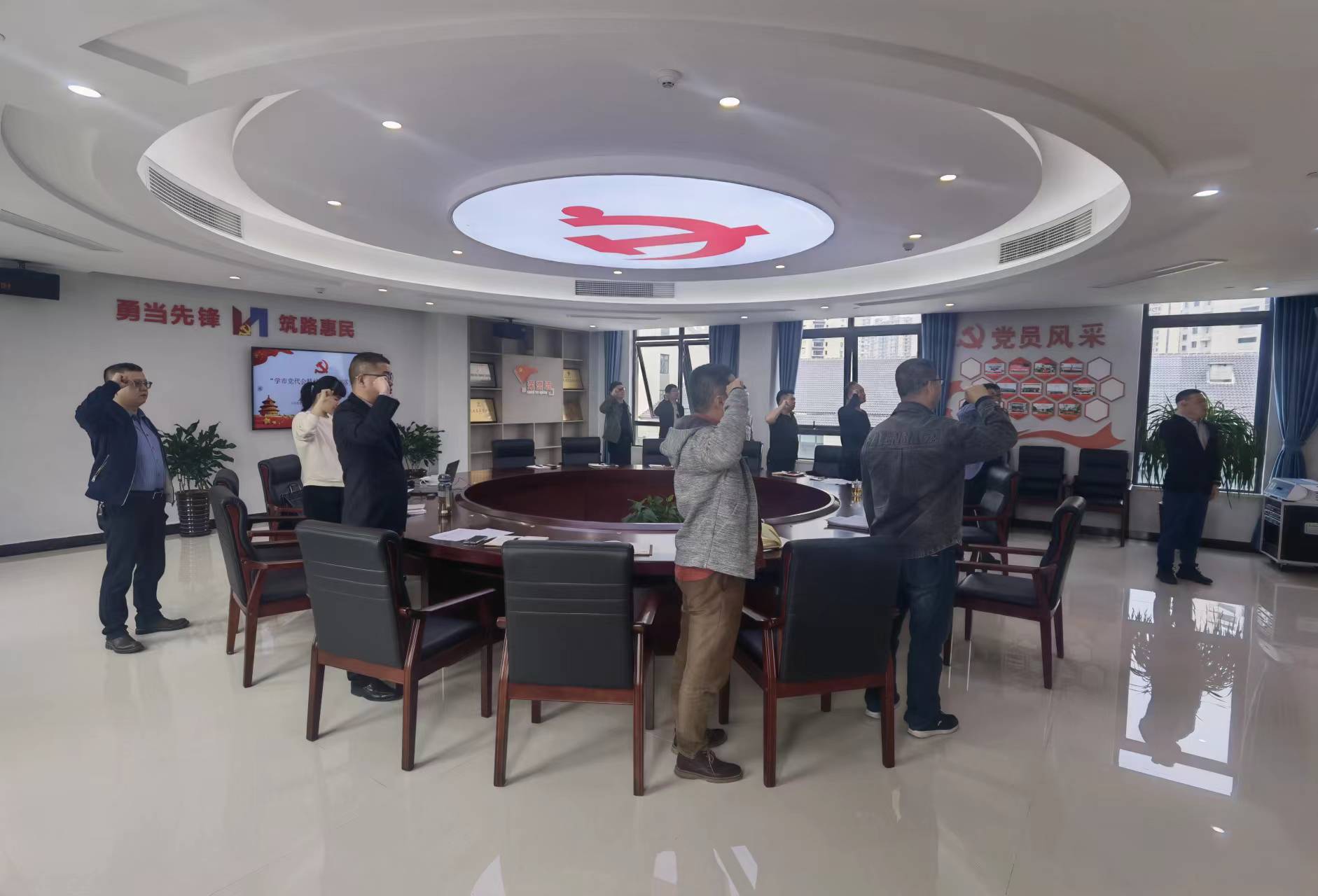 在蔡邦国的带领下,全体党员面对党旗,庄严地举起右手,大声宣读入党誓词,重温当年的决心和信念;全体党员认真学习刘小涛同志在中国共产党温州市第十三次代表大会上的报告精神及2022年温州市政府工作报告,并结合自身实际谈认识、谈体会、谈贯彻落实举措;会议传达《温州市交发集团开展“庸懒散”专项整治工作实施意见》文件精神,并学习《中共中央关于加强和改进党的作风建设的决定》《中共中央关于加强对“一把手”和领导班子监督的意见》等重要文件和党纪法规。
