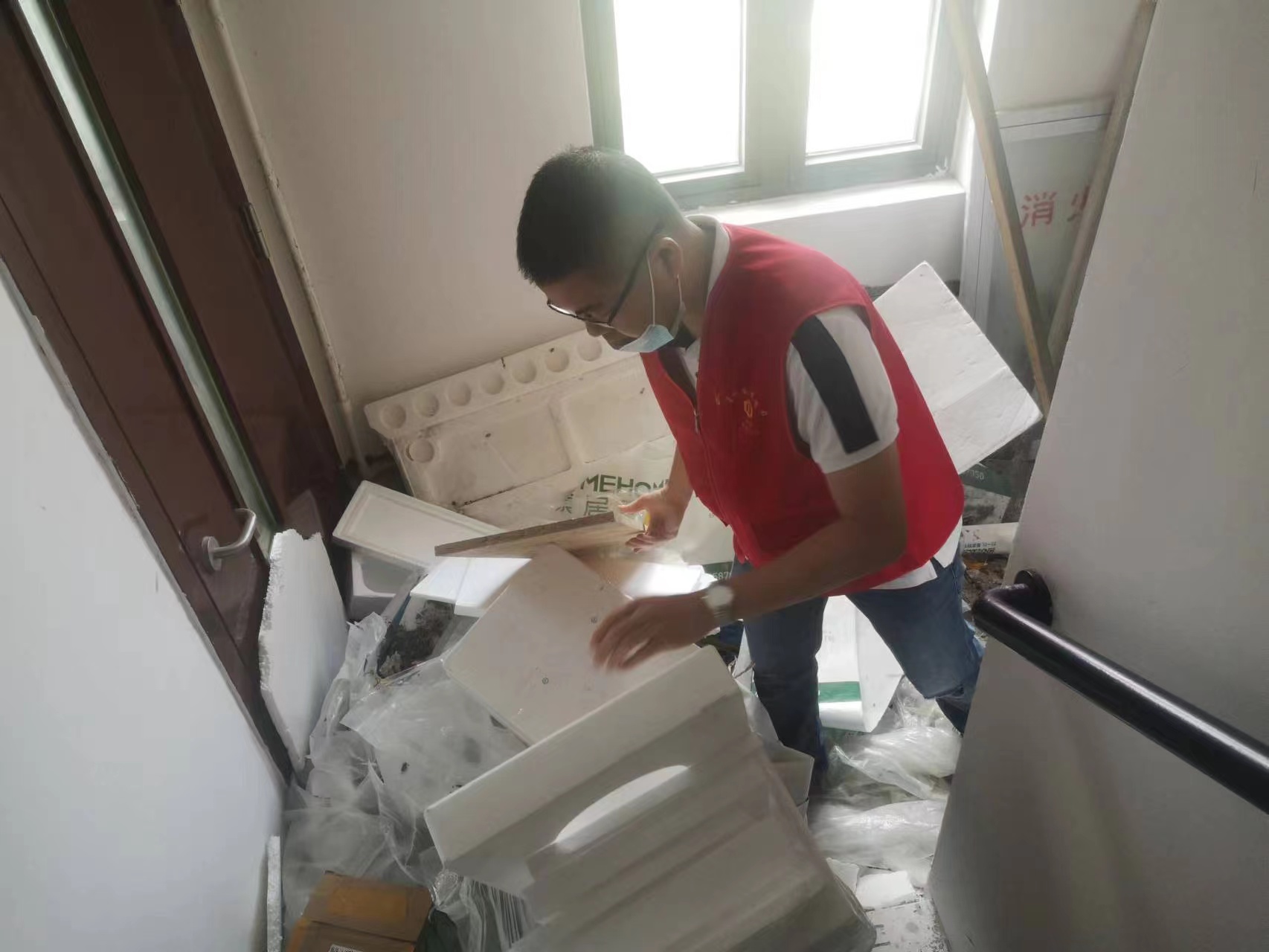 随后,党员身着红色马甲投身文明城市创建志愿服务实践。党员同志们手持垃圾袋等清洁工具,开展垃圾清理、楼道杂物清理等整治工作,并宣传引导群众争做文明市民,共建美好家园。