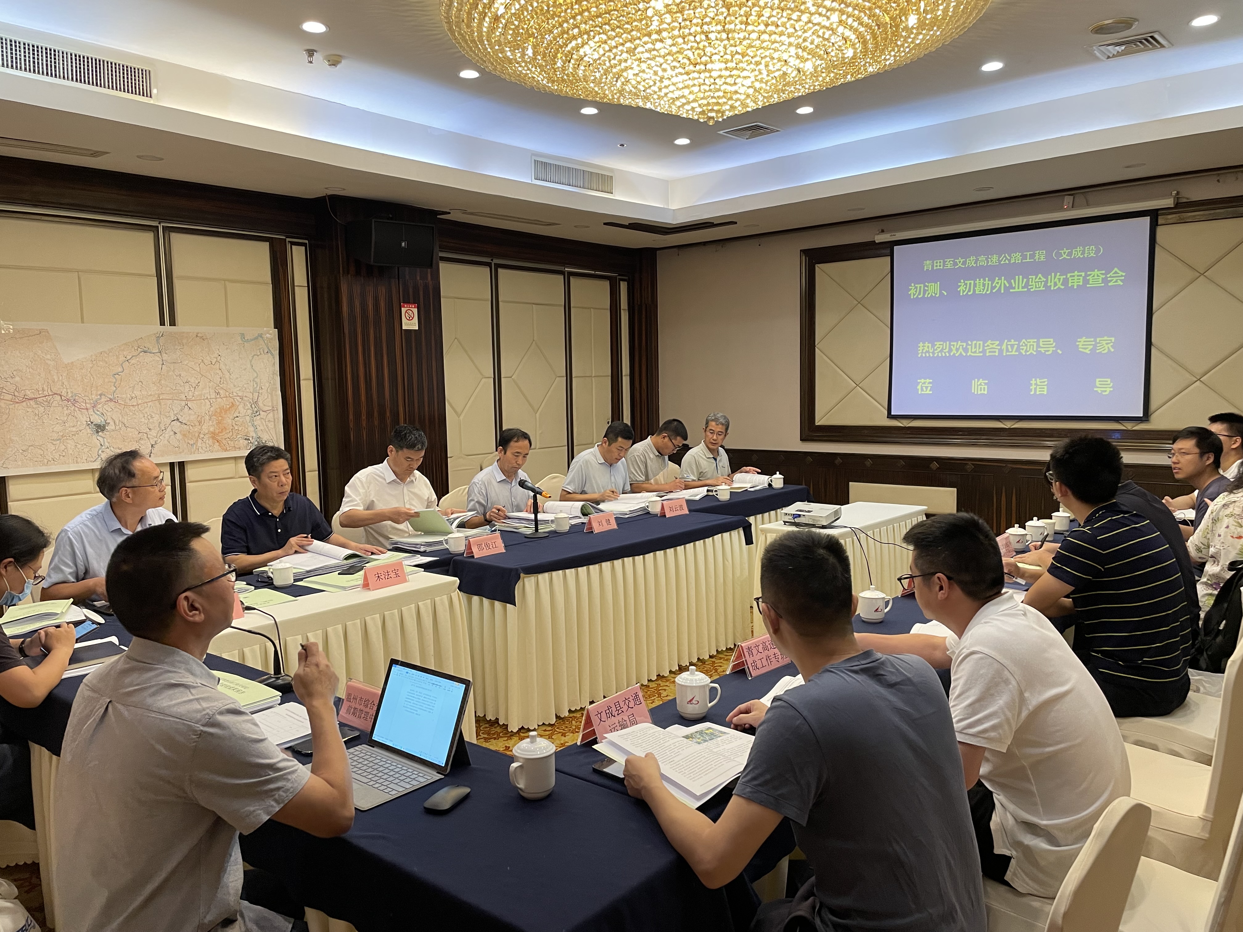 7月20日下午,青田至文成高速公路工程(文成段)初测、初勘外业验收会在杭州顺利召开。市交通运输局、市综合交通前期管理中心、市交发集团、文成县交通运输局、青文高速文成工作专班、浙江数智交院科技股份有限公司、浙江有色勘测规划设计有限公司等相关单位代表和特邀专家参加会议。
