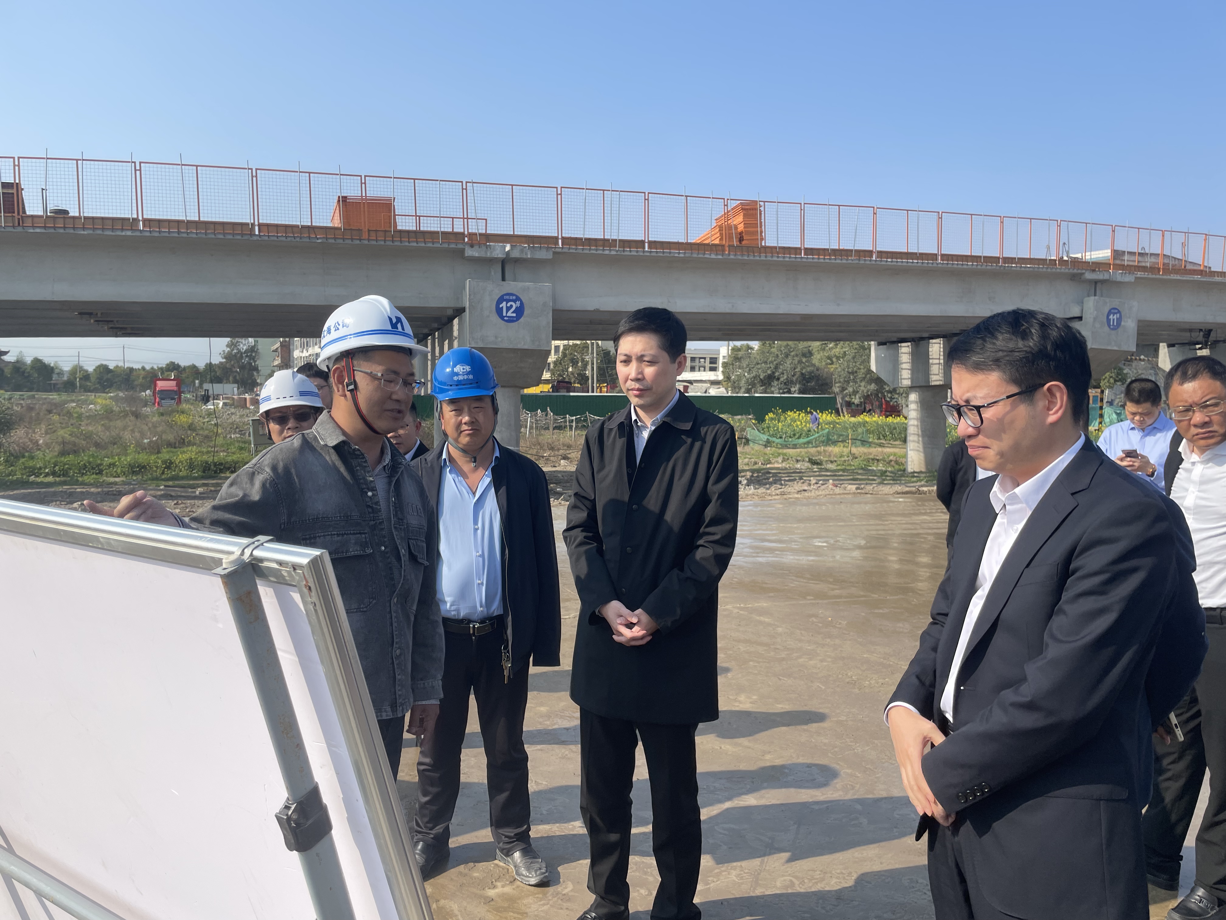 3月9日,龙港市委副书记、市长林海涵带队赴芦浦互通督查项目建设情况,沈海公司姜玉龙等陪同。