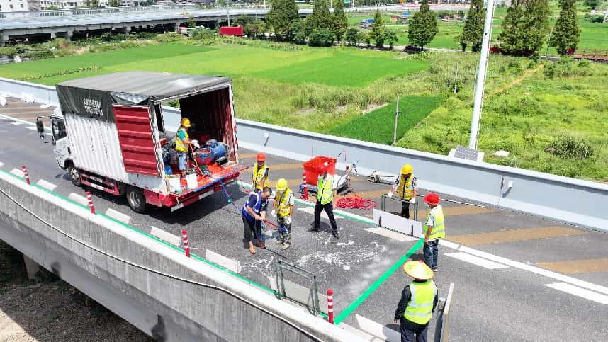 项目启动前期,项目团队深入了解了该罩面工艺在预防性养护中的独特优势与创新做法,通过周密细致的部署,科学制定切实可行的施工方案,组织施工人员进行相关工艺技术培训,为施工安全和质量提供了有力的保障。据了解,3mm改性环氧防滑薄层罩面具有优异的耐磨性、抗滑性及防水性,不仅能有效增强道路长期使用的稳定性,还可延长道路使用寿命,降低后期大规模维修成本,同时能最大程度减少对公众出行和交通运输的干扰,实现经济效益与社会效益的双赢。