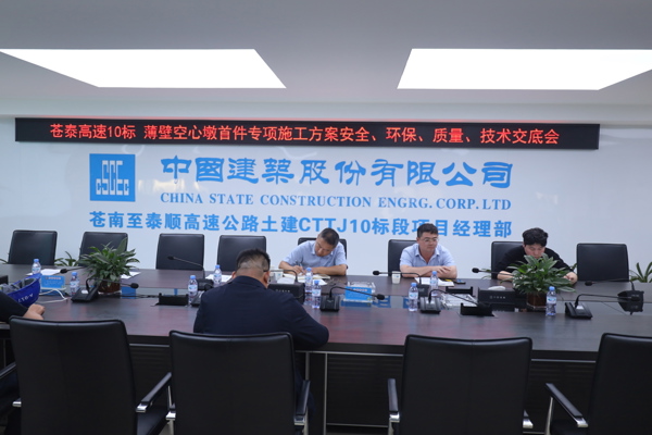 近日,苍泰高速10标项目组织召开薄壁空心墩首件专项施工方案交底会,围绕技术、质量、安全、环保四个方面,对首件施工进行了全面、深入的交底,这也标志着苍泰10标项目薄壁空心墩工程正式踏入实质性施工阶段。