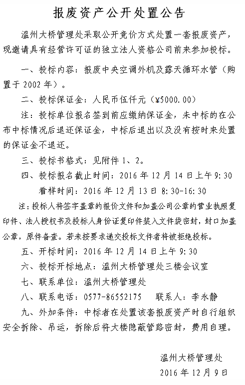 报废资产公开处置公告