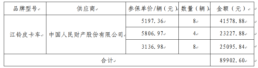 皮卡车车辆保险采购公示