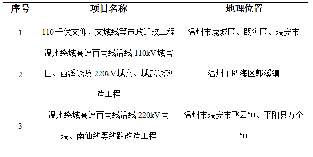 温州绕城高速西南线沿线110kV城官巨线、西溪线及220kV城文、城武线改造工程验收调查表(公示版)