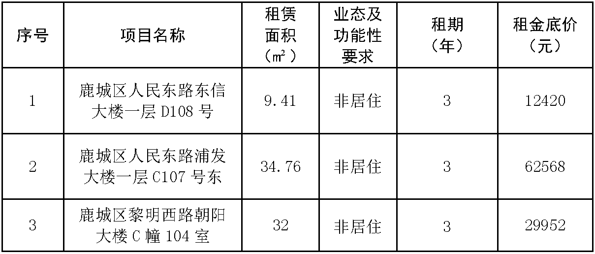 市交发集团房开公司东信大楼一层D108号、浦发大楼一层C107号东、朝阳大楼一层C幢104室资产招租公告
