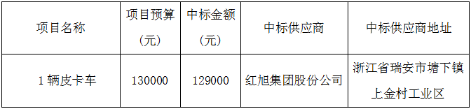 市交发集团所属温州星河物业管理有限公司关于1辆皮卡车采购项目(自主)的采购结果公示