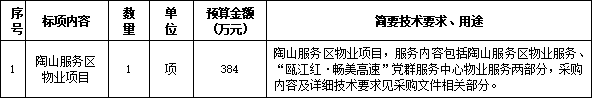 温州市交发集团所属温州市高速公路资产经营有限公司关于陶山服务区物业项目项目的采购公告
