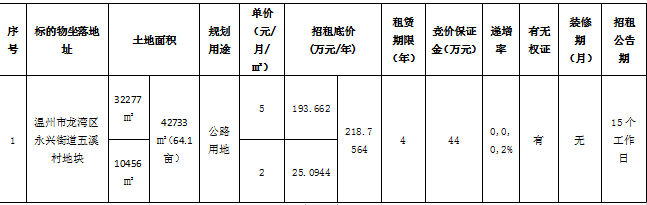 温州市交发集团所属温州市自然资源开发投资有限公司关于温州市龙湾区永兴街道五溪村地块四年租赁权交易公告
