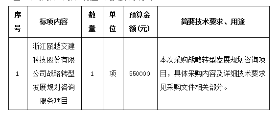 温州市交发集团所属浙江瓯越交建科技股份有限公司关于浙江瓯越交建科技股份有限公司战略转型发展规划咨询服务项目项目(自主)的采购公告