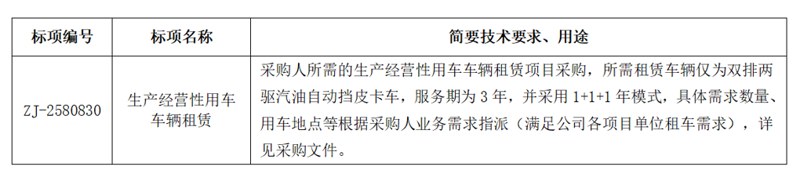 关于生产经营性用车车辆租赁项目(其他类)的采购公告