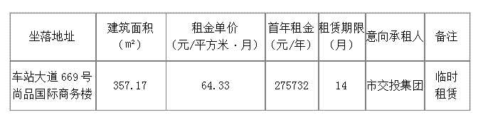 市交投集团房开公司关于尚品国际商务楼202室协议租赁信息的公示