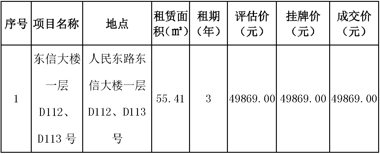 市交发集团房开公司人民东路东信大楼一层D112、D113号资产出租结果公示