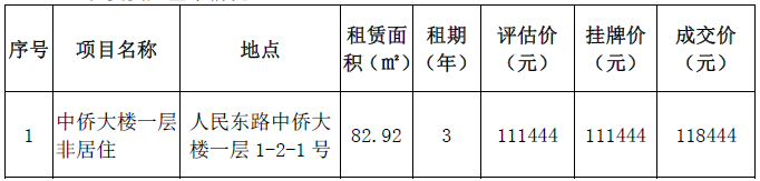 市交发集团房开公司资产出租结果公示