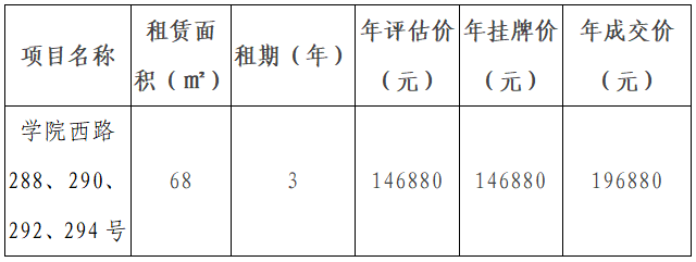市交发集团关于学院西路288、290、292、294号资产出租结果公示