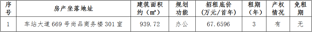 市交发集团温州房地产开发股份有限公司温州市鹿城区车站大道669号尚品商务楼301室办公用房三年租赁权(第三次)交易公告