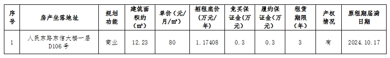 市交发集团温州房地产开发股份有限公司关于温州市鹿城区人民东路东信大楼一层D106号房产租赁权交易公告