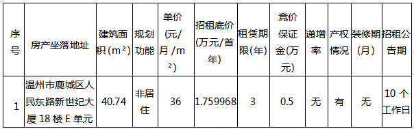 市交发集团经营公司关于温州市鹿城区人民东路 新世纪大厦18楼E单元办公房三年租赁权交易公告