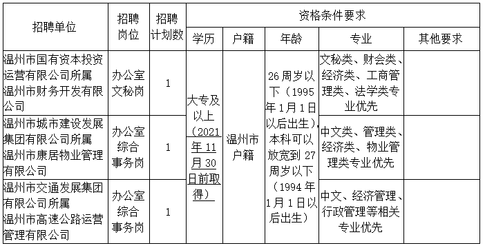 温州市市属国有企业面向退役女兵招聘工作人员的公告