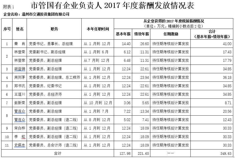 市管国有企业负责人2017年度薪酬发放情况表