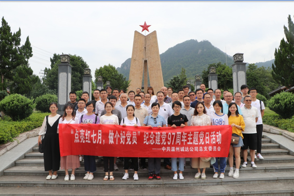 为纪念中国共产党成立97周年,贯彻落实十九大精神,学习习近平新时代中国特色社会主义思想,深化“两学一做”学习教育制度化、常态化,7月6日,诚达公司党总支组织党员前往浙江文成革命烈士纪念馆,开展“点亮红七月,做个好党员”的主题党日活动。