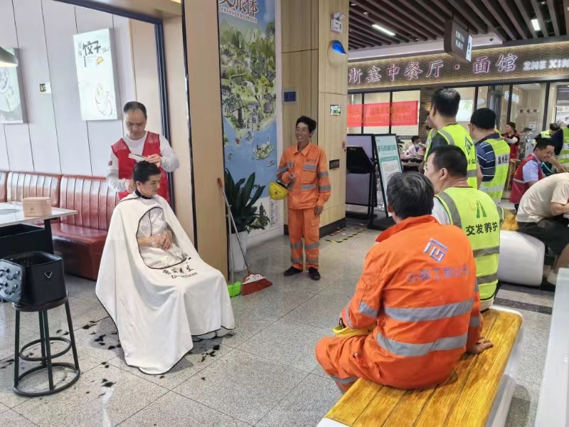 活动现场热闹非凡,来自7家共建单位的40余名志愿者们身着统一的红色马甲,穿梭于各个服务摊位之间,用他们的热情和专业技能为群众提供服务。ETC便捷服务点前,志愿者们耐心解答司机关于ETC办理及使用的疑问,助力高速通行更加顺畅;交通安全宣传区,生动的展板和耐心的讲解让安全驾驶的理念深入人心;而爱心茯茶和免费理发服务,则为炎炎夏日中的劳动者们送去了一丝清凉与惬意。