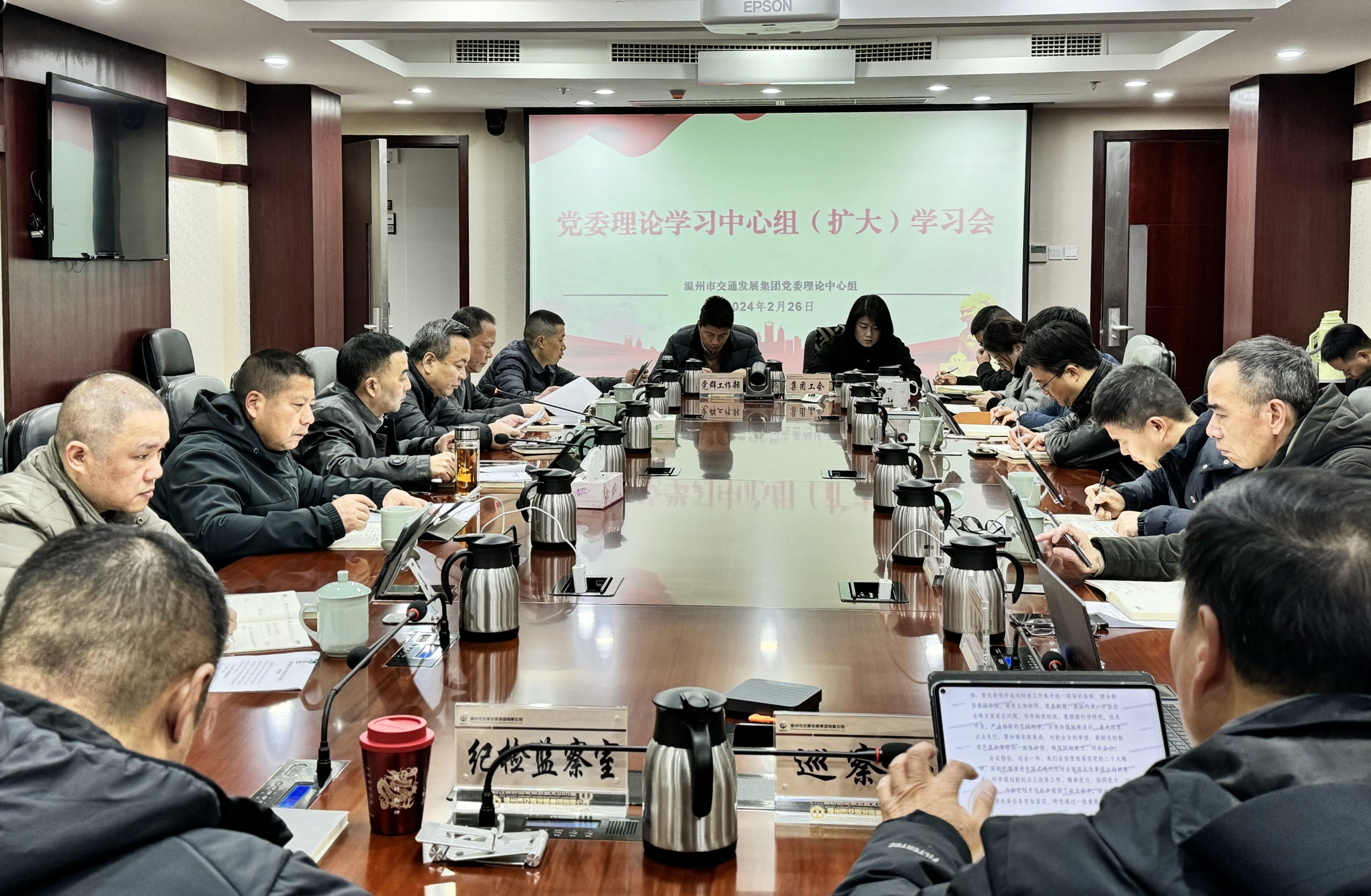 2月26日,集团召开党委理论学习中心组(扩大)学习会,学习《习近平主持召开中央全面深化改革委员会第四次会议》精神、省市“新春第一会”精神,理论中心组成员轮流领学各项相关学习资料,交流学习心得。集团党委副书记翁结群主持会议,党委理论学习中心组成员、相关部室负责人参加会议。