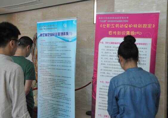 近日,集团工会在全系统开展“走基层”普法宣传联合维权活动圆满结束。本次巡展活动为期3个月,在工程投资建设任务重、生产经营业务繁忙、党的群众路线教育如火如荼进行的情况下,本次活动创新方式,根据集团系统各单位工作情况,采取分时段穿插进行巡展,避免与中心工作冲突。活动以“依法用工、依法维权、和谐共赢”为主题,共展出了以“交投十大最美女职工、文明餐桌行动、浙江省企业民主管理条例、劳动保护宣传知识集锦、《女职工劳动保护特别规定》宣传知识集锦”为主题的五个版块内容。活动以职工为服务对象,以普法宣传教育为手段,营造维护职工权益氛围,提高职工依法维权意识,规范公司用工行为,维护职工的合法权益,在集团全系统引起了较好反响,受到了广大干部职工的普遍欢迎。