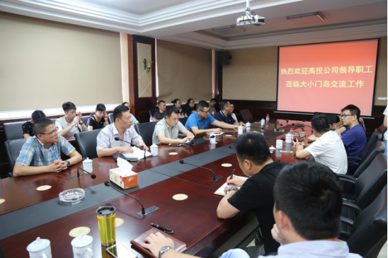 首先,在大小门岛公司进行座谈会。座谈会上, 大小门岛公司副总经理王卫介绍了公司概况和基础设施情况会上,高投公司对大小门岛公司的区域性开发建设的特点,对大小门岛的未来一致看好。两家兄弟公司共聚一堂,对工作、学习、生活都进行了热烈的讨论,并表明接下来会进一步加强合作与交流。紧接着,覃毅宝带领大家参观了国内首座集通水、通电、通车三通功能的特大型跨海大桥——大门大桥,和为温州海洋经济做好充分准备的近万亩围垦工程,以及各种专业的配套设施工程。