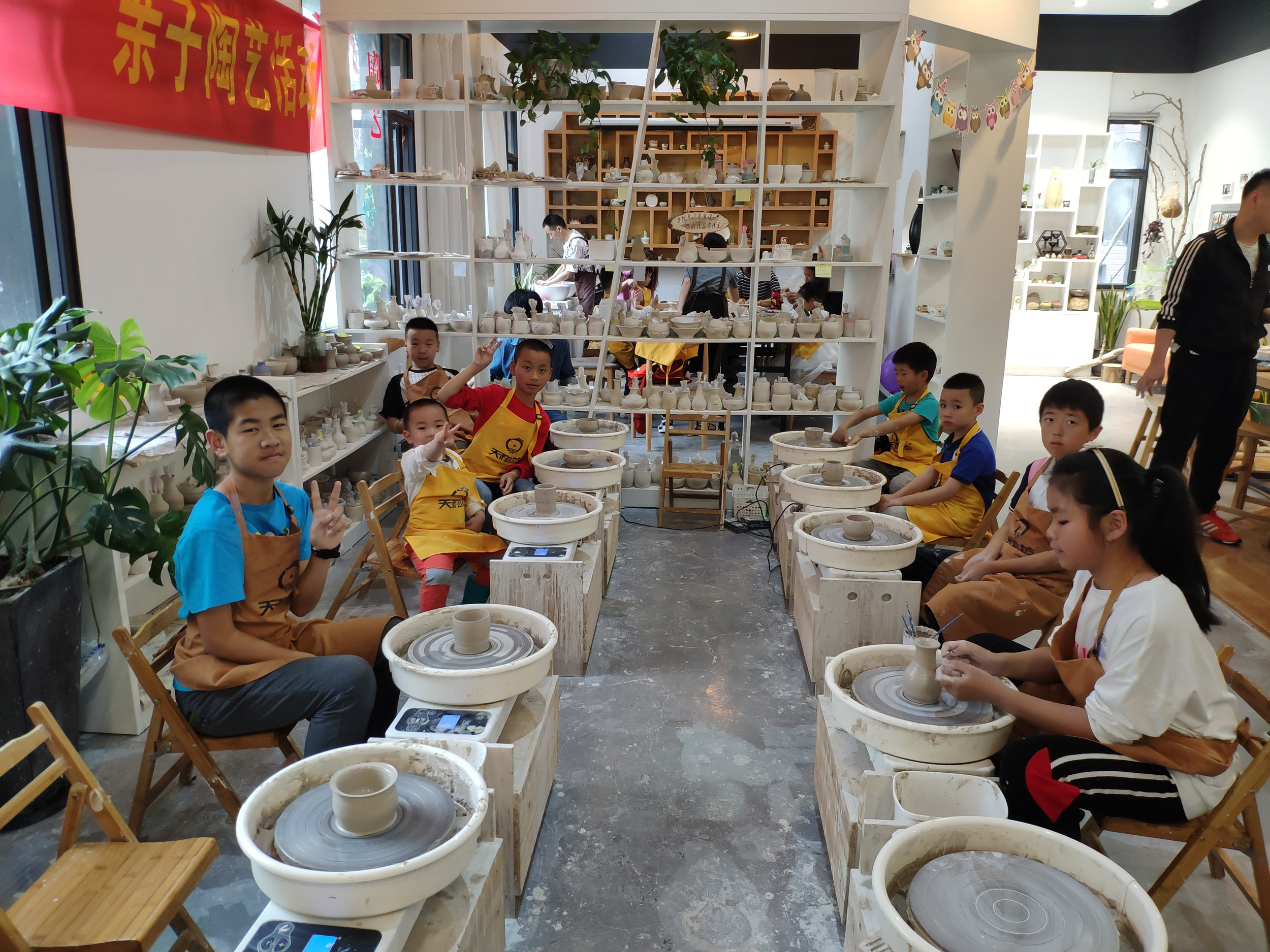 活动现场,孩子们热情高涨,按照老师的指示结合自己的创意,认真的自由创作。他们有的做杯子、有的做碗、有的做花瓶,充分发挥了自己的想象力和创造力。