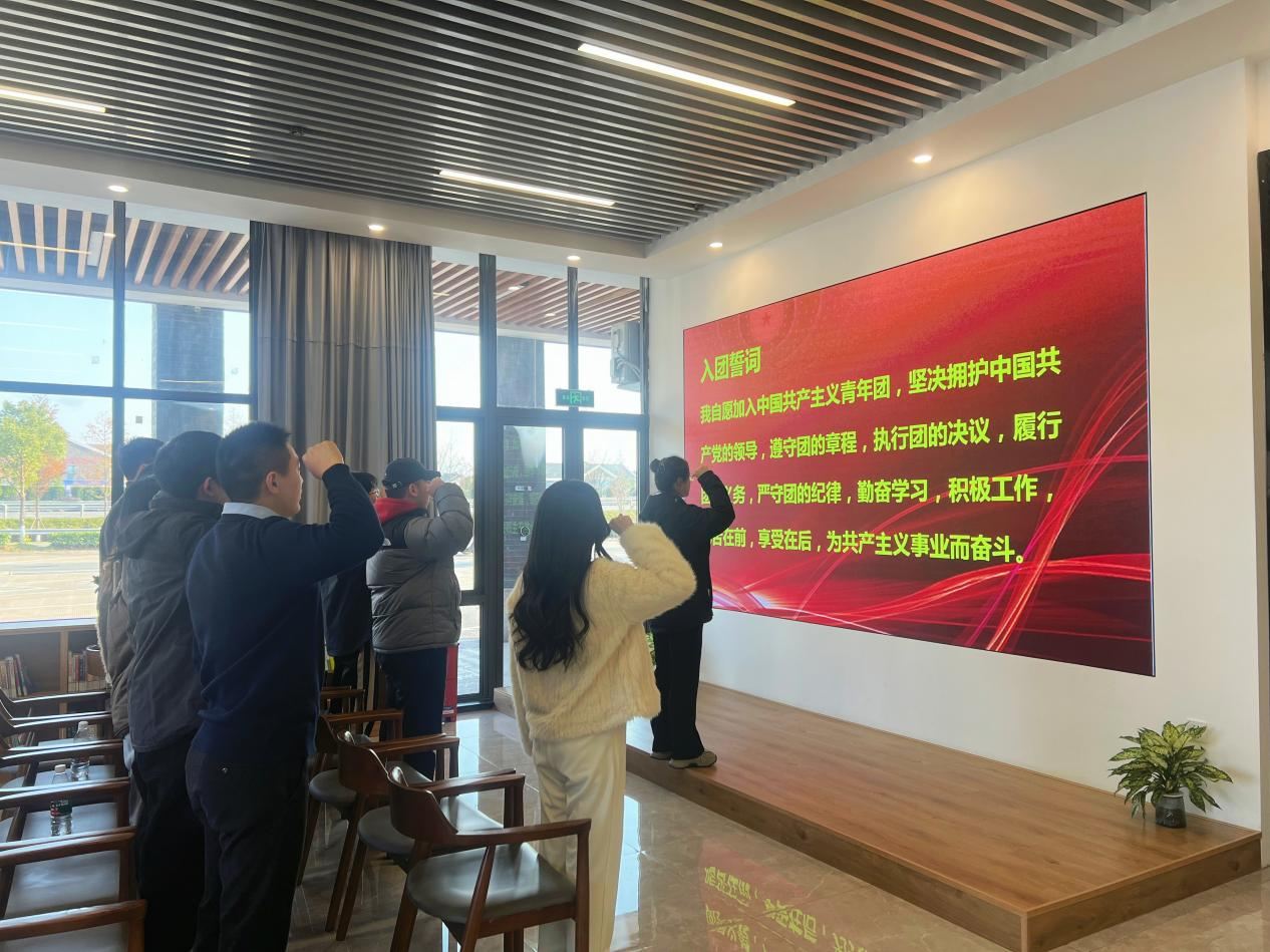 2023年12月27日,温州交发集团机关、经营公司、房开公司、交通规划设计院团员青年前往陶山服务区青年驿站参观“畅美高速·青春驿站”,并重温入团誓词,重忆入团初心。观看红色影视教育片,从历史中汲取精神财富,继承和弘扬伟大的红色精神,以更加饱满的热情、更加昂扬的斗志砥砺奋进,不忘初心,锐意进取,在工作岗位上贡献自己的力量。